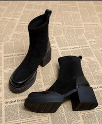 Modern, edgy, and built for impact, the Lennox Suede Panel Platform Boots deliver style with serious attitude. Designed with a luxe mix of soft suede and smooth faux leather, a chunky platform sole, and a bold block heel, these boots are made for standing tall. The pull tab and side zip make slipping them on effortless.