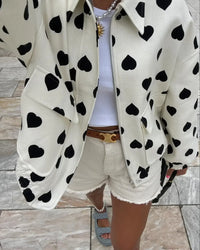 Add playful edge to your outerwear with the Hearts on Main Utility Jacket, where street style meets charm. Designed with bold heart prints, oversized pockets, and a relaxed silhouette, this jacket blends functionality with fun in the best way.